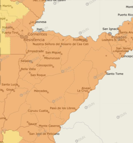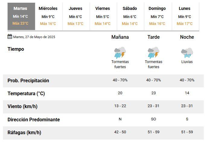 Según el reporte del SMN, se prevén valores de precipitación acumulada entre 40 y 90 mm, pudiendo ser superados en forma puntual. Esto puede generar dificultades en varios puntos de la ciudad y la provincia, por lo que se pide a la población tomar los recaudos necesarios.