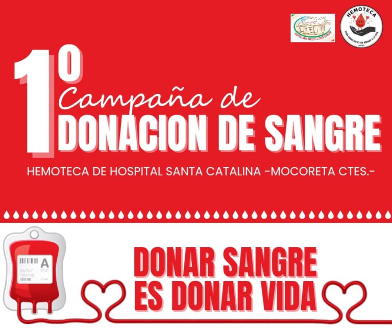 El hospital base «Santa Catalina» de la localidad de Mocoretá lanzará su 1º campaña de donación de Sangre bajo el lema «una actitud solidaria puede salvar vidas». Personal del hospital informa que necesitan donantes voluntarios para la colecta de sangre,…