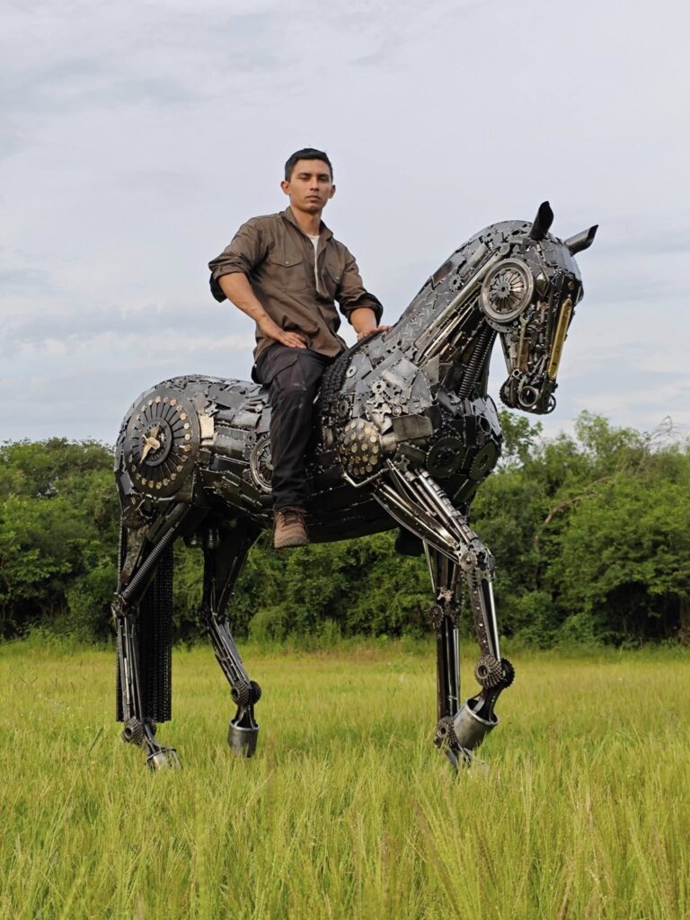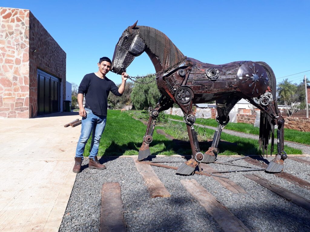 Para conseguir el material que necesita, recorre talleres mecánicos y de motos, además de chatarrerías de su localidad y de pueblos cercanos, lo que le permite abastecerse para trabajos pequeños, medianos y monumentales. Su creatividad y dedicación hicieron que sus obras trascendieran fronteras: hoy, sus encargos llegan a Estados Unidos, Barcelona y Puerto Rico, llevando su arte a colecciones internacionales.