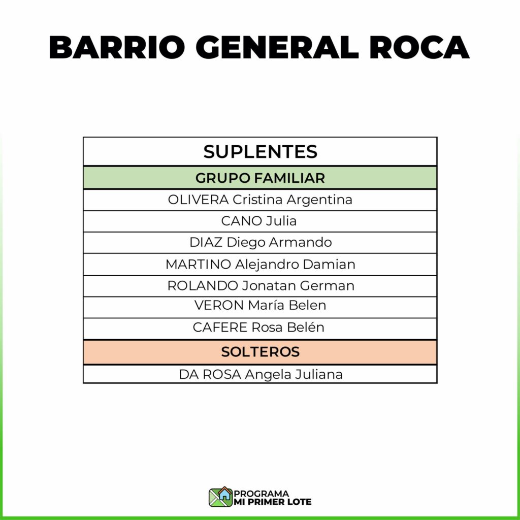 Seguidamente, se da a conocer como quedaron conformadas las manzanas del barrio Gral. Roca -ex Hípico-, barrio presidente Raúl Alfonsín y el barrio Héroes de Malvinas con sus flamantes adjudicatarios. Además, se conformó el listado de beneficiarios suplentes.