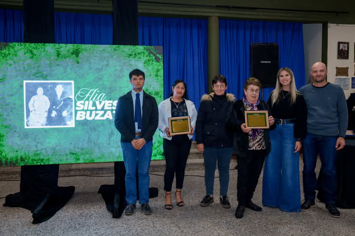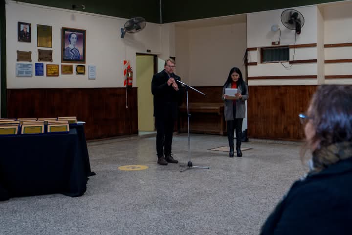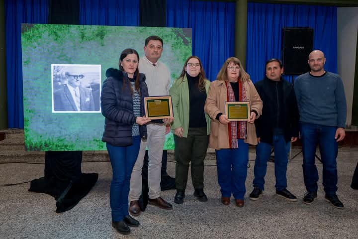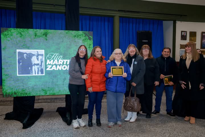 Don Francisco Zanoni y Doña Justina Martino, donantes del terreno de la Escuela N.º 286 “Tte. Elías Galván”.Las escuelas reconocidas también recibieron placas conmemorativas por su trayectoria y compromiso con la educación local.