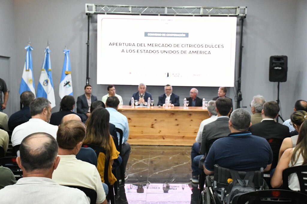 El intendente de Marcelo Tisocco participó este martes en la ciudad de Monte Caseros de una jornada clave para el futuro de la citricultura regional, donde se firmó un convenio de cooperación que habilita la exportación de cítricos dulces a Estados Unidos y se presentó oficialmente el Plan Naranja 2026.