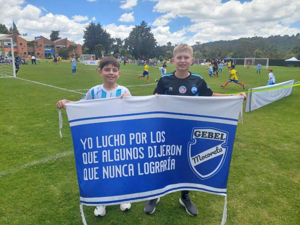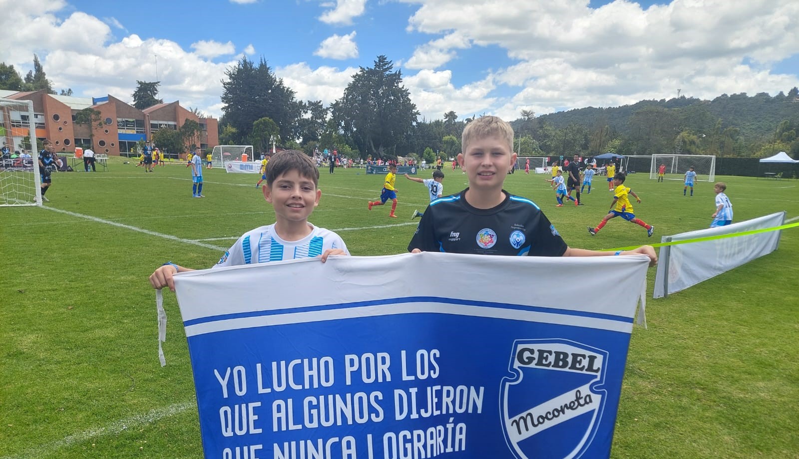 Juan Martín y Joaquín posando orgullosos de su bandera de Gebel Mocoretá ⬇️