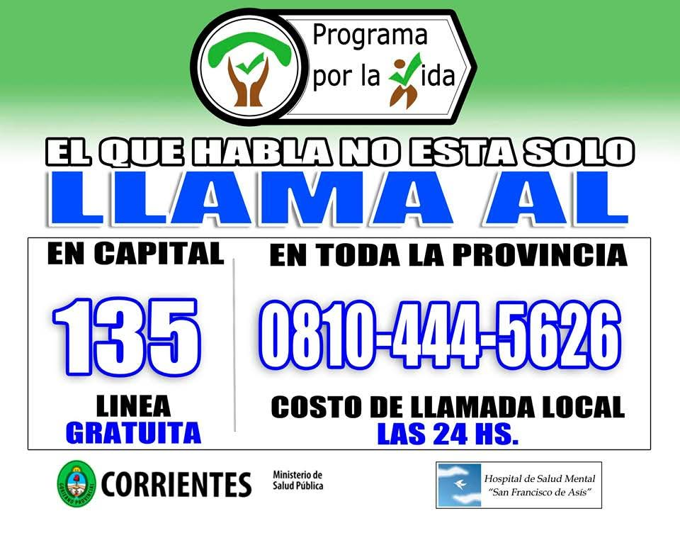 La provincia de Corrientes está adherida a nivel nacional con la línea 135 dentro del «Programa por la vida».