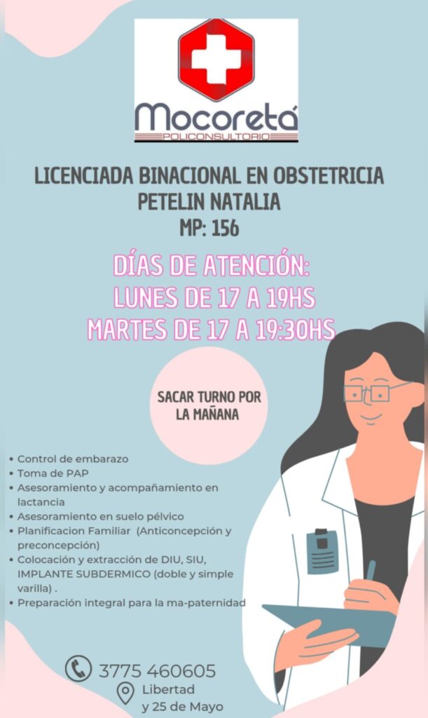 Se trata de la Licenciada Binacional en Obstetricia Petelín Natalia MP 156.