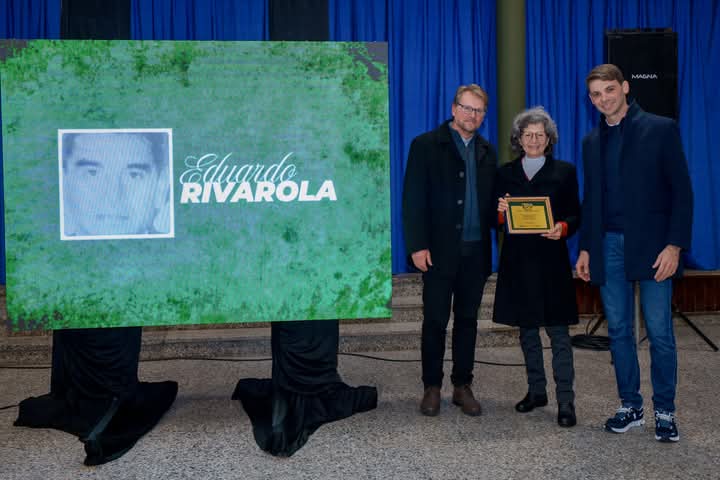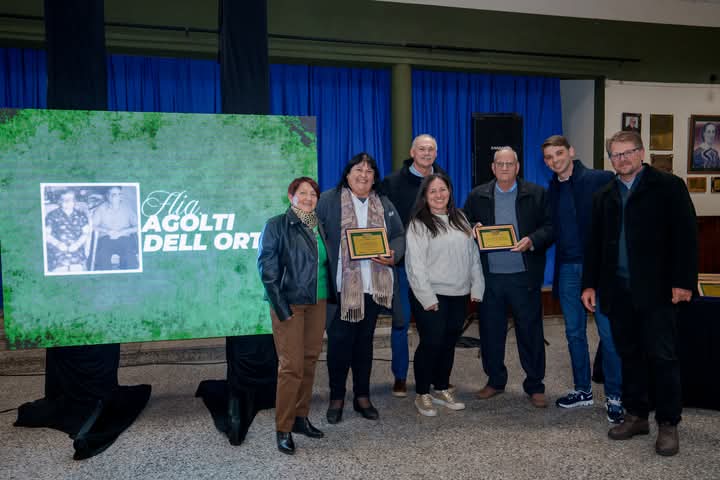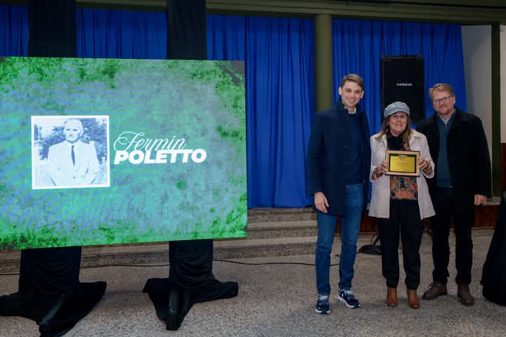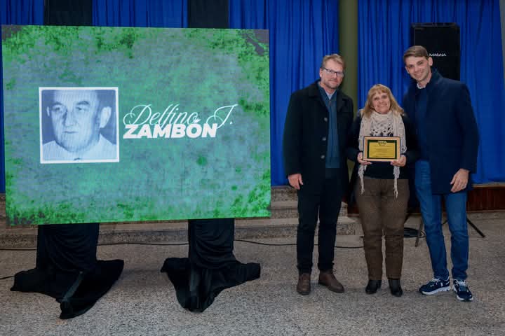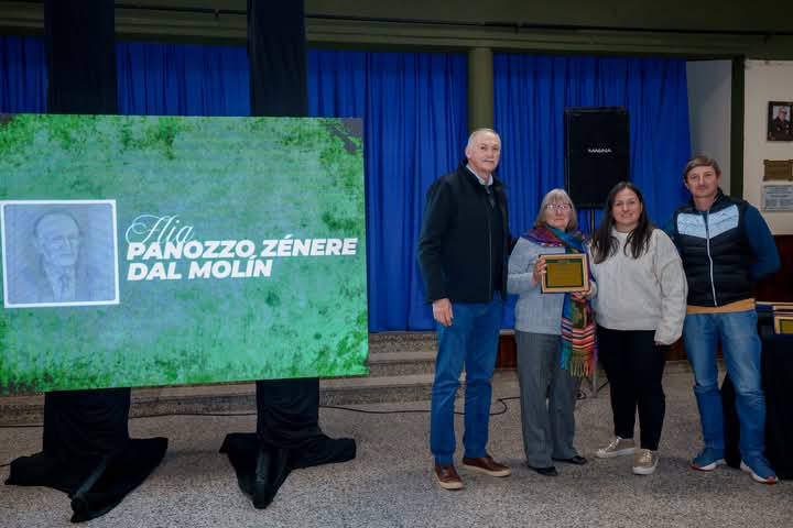 Don Francisco Zanoni y Doña Justina Martino, donantes del terreno de la Escuela N.º 286 “Tte. Elías Galván”.Las escuelas reconocidas también recibieron placas conmemorativas por su trayectoria y compromiso con la educación local.