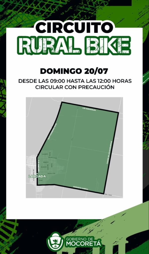 Este domingo 20 de julio, los amantes del ciclismo se darán cita en Mocoretá para participar del esperado Rural Bike, una competencia que combina deporte, naturaleza y compañerismo en un circuito rural especialmente diagramado para la ocasión.