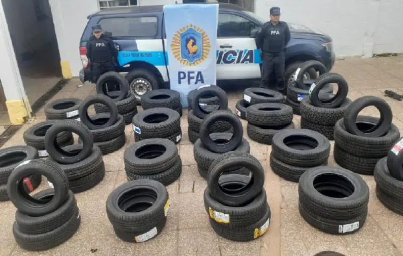 Efectivos de la División Unidad Operativa Federal de la ciudad fronteriza de Paso de los Libres interceptaron otro cargamento de encomiendas de ingreso ilegal que se dirigía desde la provincia de Misiones hacia Buenos Aires, cargado con neumáticos de origen chino, ingresados de forma clandestina al país.