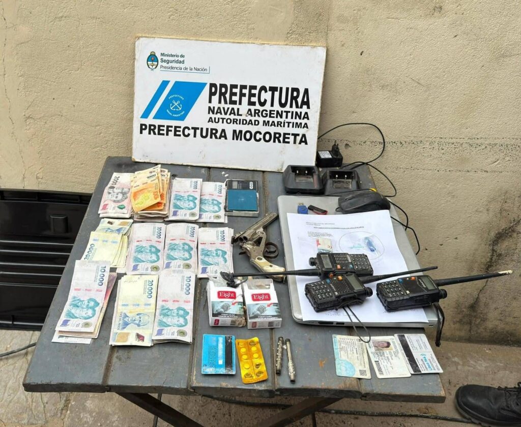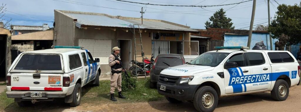 En un operativo simultáneo realizado este domingo, Prefectura Naval Argentina detuvo a una persona y secuestró drogas, un arma de fuego, municiones, equipos de comunicación de frecuencia policial y vehículos, durante dos allanamientos en Mocoretá. El procedimiento, ordenado por el Juzgado Federal de Paso de los Libres, fue ejecutado por personal de Investigaciones de la Prefectura Monte Caseros.
