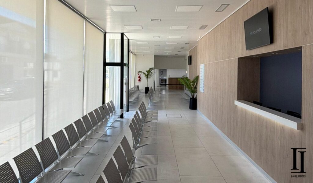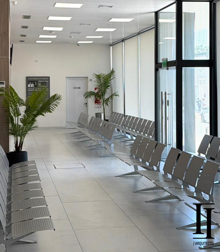 «Uno de los lugares más destacados del sanatorio es la entrada principal y el hall de recepción, pensado para generar una experiencia cálida y ordenada desde el primer contacto, integrando señalización y llamadores. Se destaca la iluminación y comodidad, lo que refuerza la sensación de modernidad y profesionalismo».
