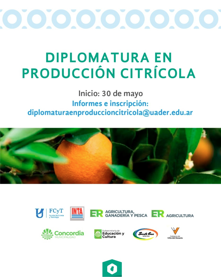 Diplomatura en Producción Citrícola. La misma es una oferta académica de la Facultad de Ciencia y Tecnología Sede Chajarí de la Universidad Autónoma de Entre Ríos UADER junto al Instituto Nacional de Tecnología Agropecuaria INTA – Estación Experimental Concordia, Entre Ríos.-