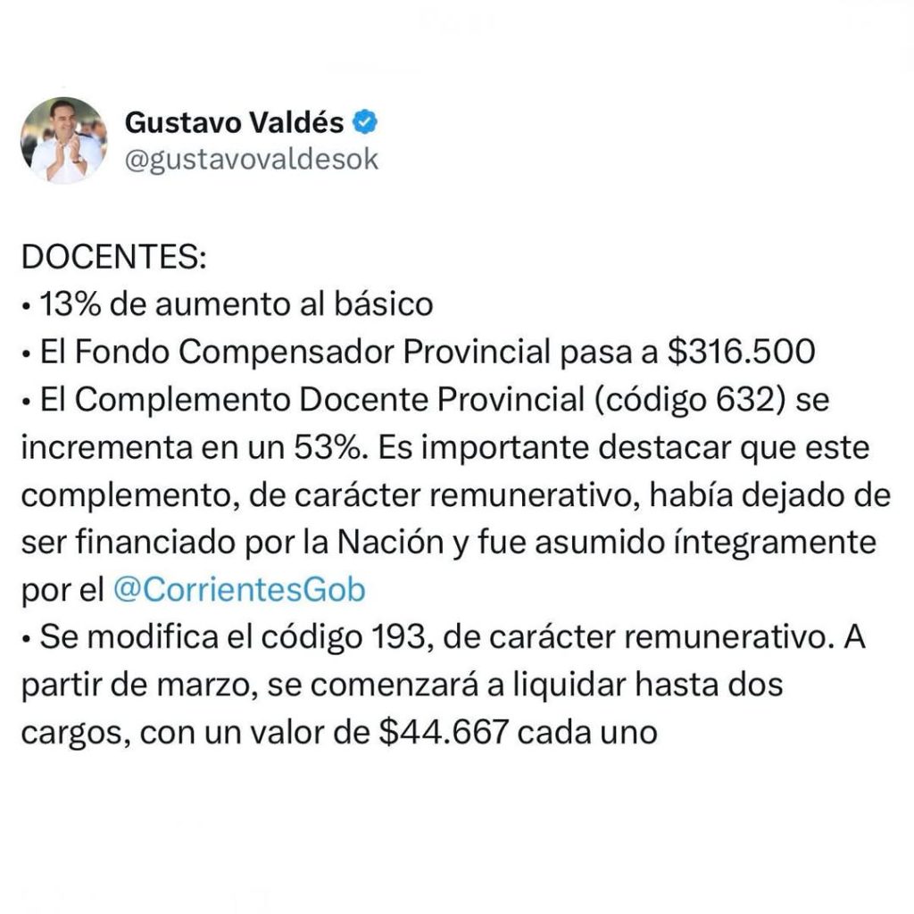 El ministro de Hacienda y Finanzas de la provincia de Corrientes, Marcelo Rivas Piasentini informó este miércoles un aumento del 13% para los estatales provinciales, jubilados, pensionados. También difundió ayudas escolares y asignaciones familiares. Estos incrementos alcanzarán a activos y pasivos de la administración pública y significan una inversión anual de 130.000 millones de pesos por parte del gobierno provincial.